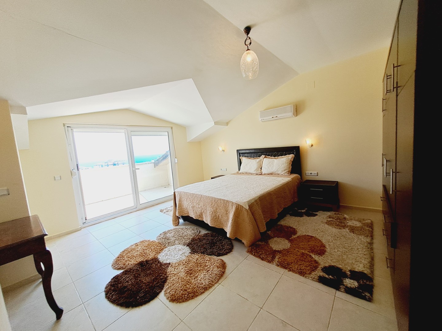 Alanya’nın sahil bandında yer alan Türkler Mahallesi’nde bulunan daire, plaja sadece 300 metre uzaklıktadır. Deniz ve şehir manzarasıyla çevrelenen bu kompleks, açık havuz, sauna, hamam, fitness, basketbol sahası gibi tam donanımlı sosyal alanlara sahiptir. Sessiz ve huzurlu bir çevrede, aktif bir yaşam arayanlar için birebirdir.